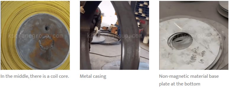 The electromagnet is the heart of the electromagnetic crane. It consists of a magnetic core and a coil wound around the core. When current flows through the coil, it generates a strong magnetic field and electromagnetic force, which attract ferromagnetic materials.
